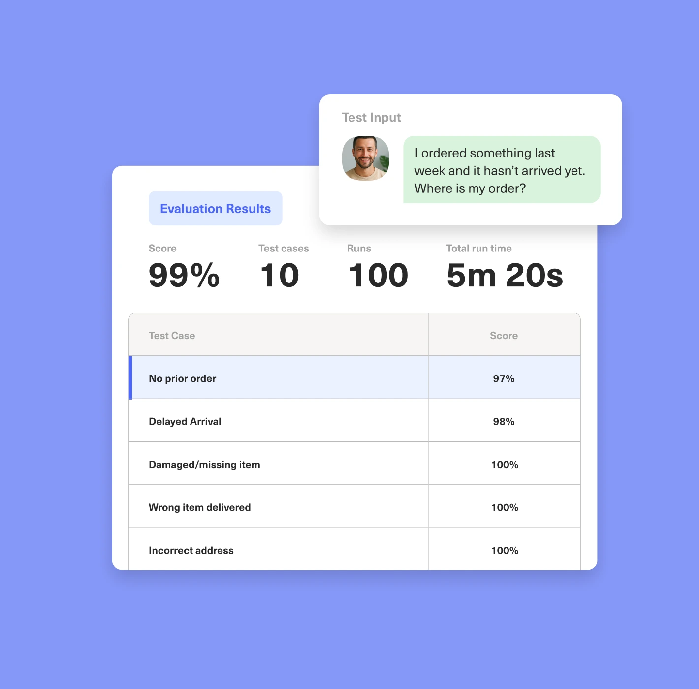 Take the guesswork out of AI Agent performance with automated evaluations that define benchmarks, grade accuracy instantly, validate at scale, and speed up iteration for faster, more reliable AI testing.