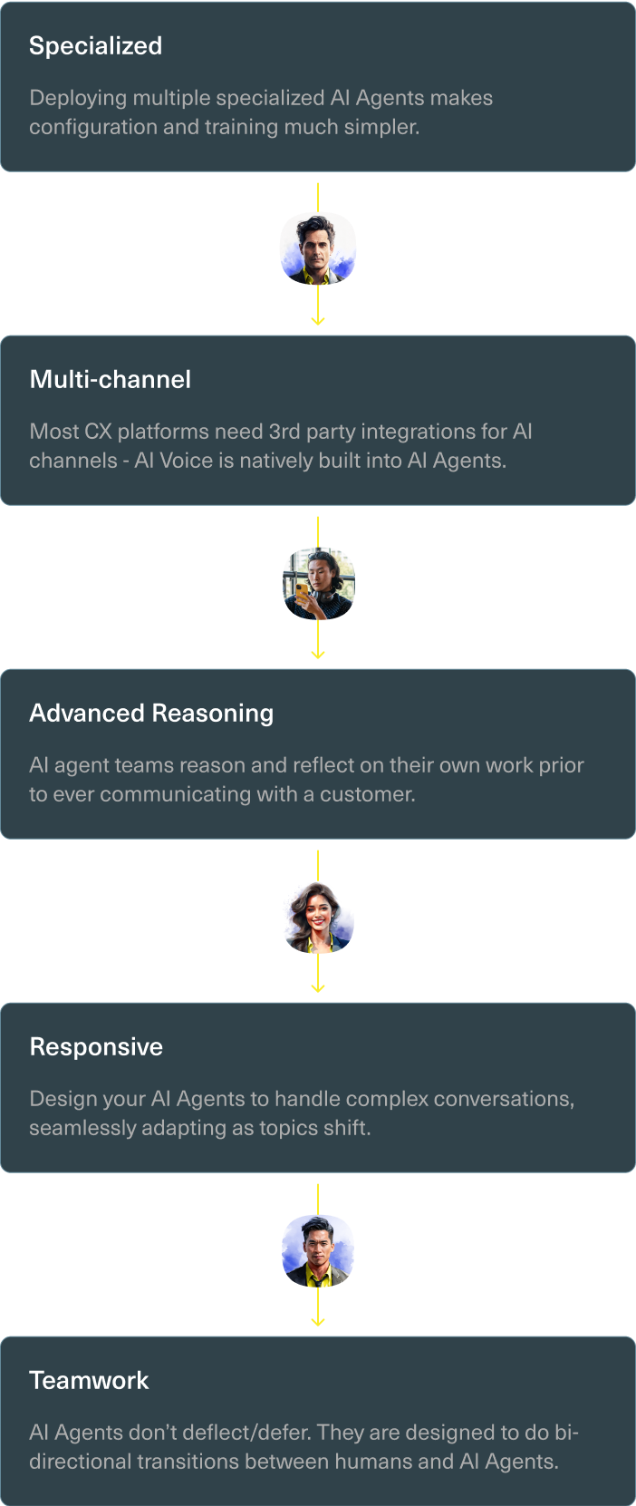 Unlike other CX solutions, our AI Agents aren’t an add-on—they're fully integrated into the platform and your team. They work seamlessly with your reps to deliver truly S-M-A-R-T service.