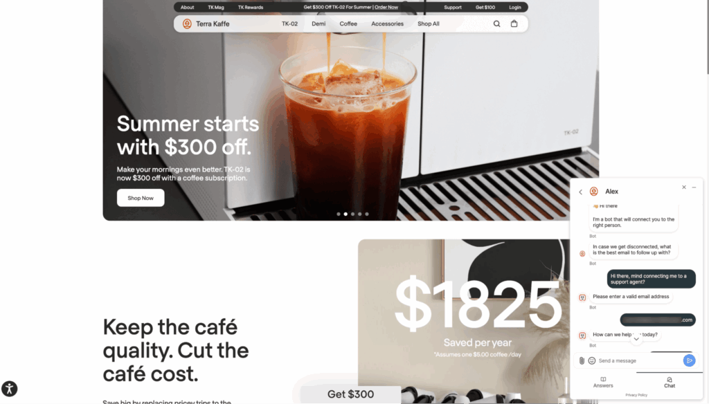 A better solution would be creating a clear path to human agents. That means your AI interface (whether it’s a chatbot, voice assistant, or self-service portal) should make it obvious how and when the customer can connect to a live representative.