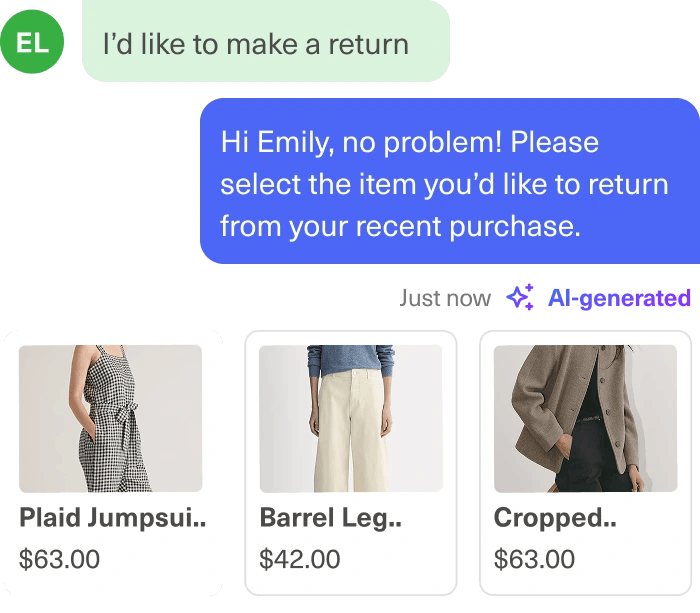 For example, say a repeat customer contacts an e-commerce fashion retailer’s chat support about a missing order. Before the agent even replies, AI pulls their past purchase history, notes their preference for express shipping, and identifies that they’ve recently engaged with the brand’s new collection on social media.