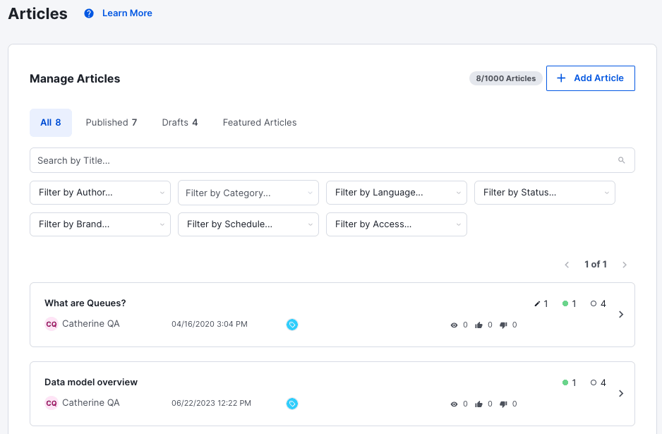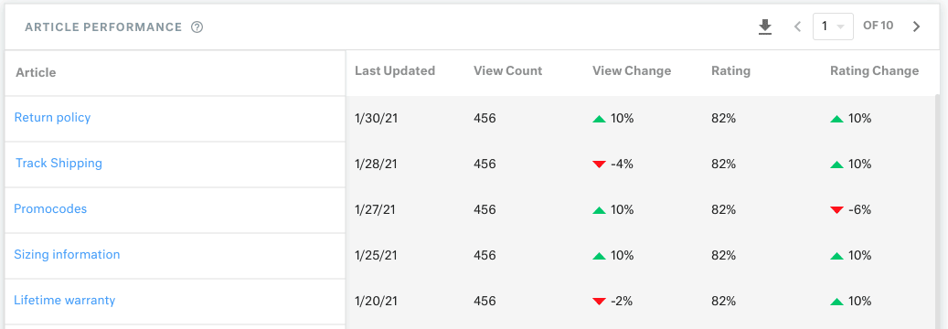 You can use the knowledge base report on Kustomer to understand how each article is performing. This also gives you insights into whether customers are getting answers to their support requests or not.