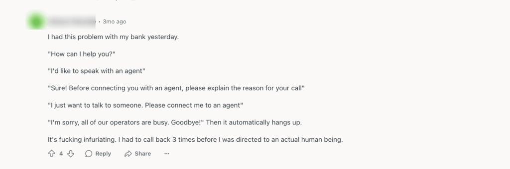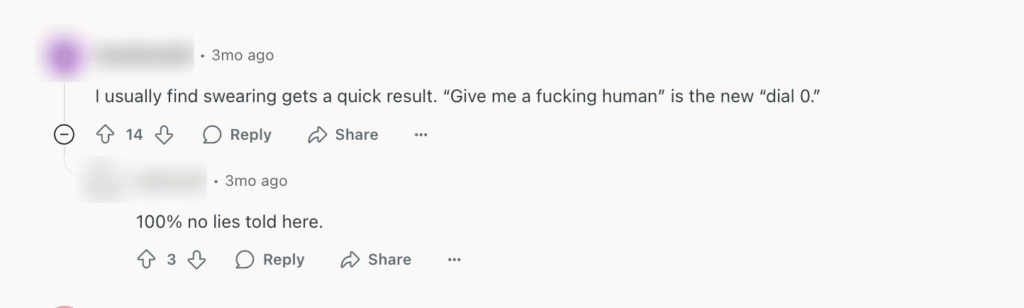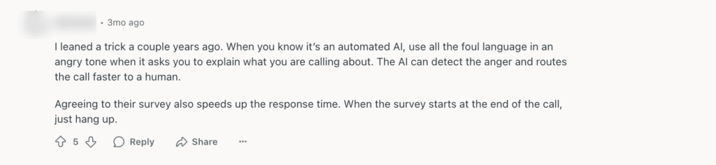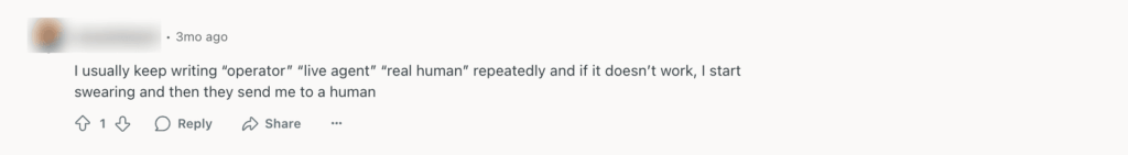Luckily, some users are finding ‘interesting’ ways to connect to human agents, but you can always make it easier.