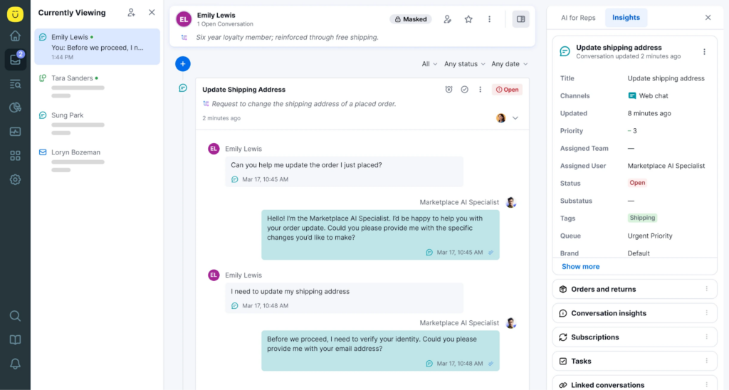 In this case, knowing their purchase history, previous conversations, account status, order details—and making that intelligence available to both AI agents and human agents in a unified interface.