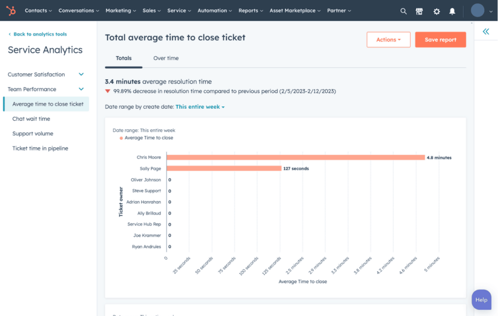 - Native CRM Integration. HubSpot Service Hub is already fully embedded into the CRM. No syncing, no custom APIs, no extra data connectors needed to align support, sales, and marketing.