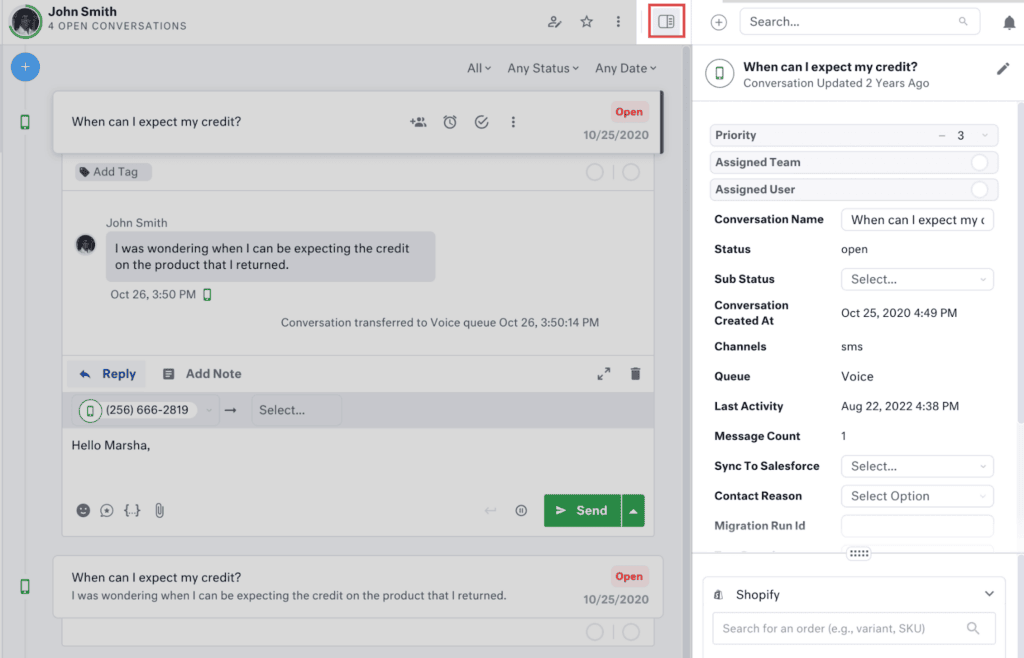 Agents work from a single view, easily toggling channels without switching screens or losing context.