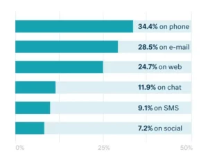 Across industries, customer service teams are seeing a 17% increase in customer service inquiries during the global pandemic. Phone inquiries are seeing the largest uptick, with a 34% increase, followed by e-mail (28% increase) and web (24% increase). Social channels are being impacted the least, with only a 7.2% uptick.