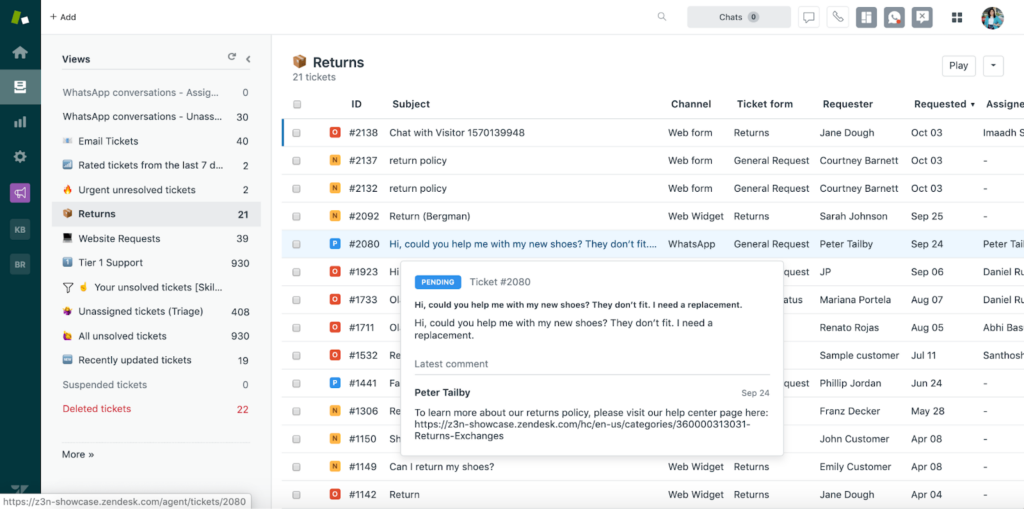 - Zendesk Support. This is the ticketing system. It houses the inbox, automation rules, macros, SLAs, and views agents use to manage tickets and workflows.