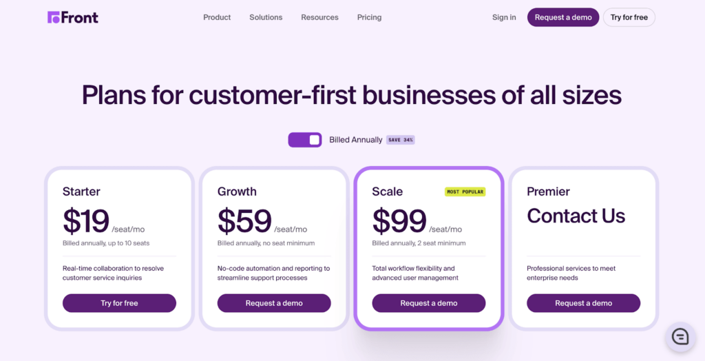 - Front treats everything as one team with separate inboxes—fine for lean teams, but hard to scale when you support multiple products or business units.