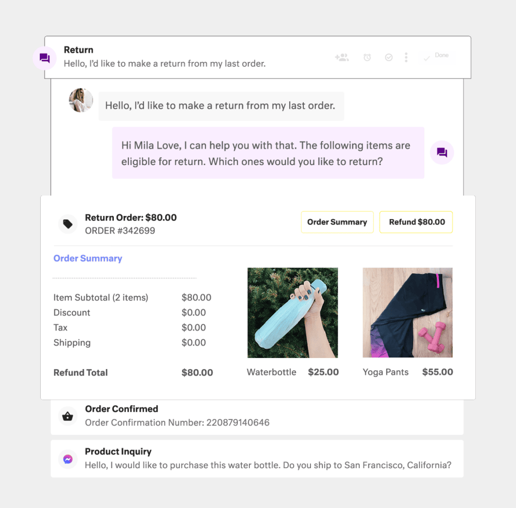 - See the full picture instantly: No more tab-switching. Kustomer natively integrates with your e-commerce and backend systems to show agents every order, return, and conversation in one view.