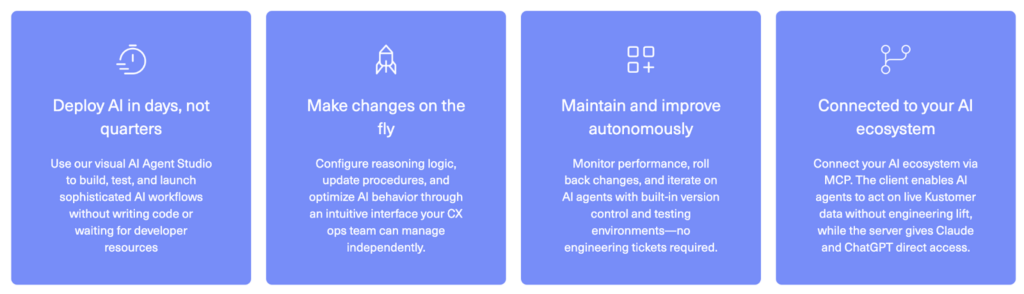 | Kustomer | CRM-native AI with a unified customer timeline that feeds directly into autonomous agents | Mixed stacks where the AI needs to see and act on data from multiple systems | Per seat or per conversation |